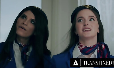 Lovely Busty Teen Stewardess Enjoys Gonzo Intercourse With Her Charming Brunette Transgirl Colleague